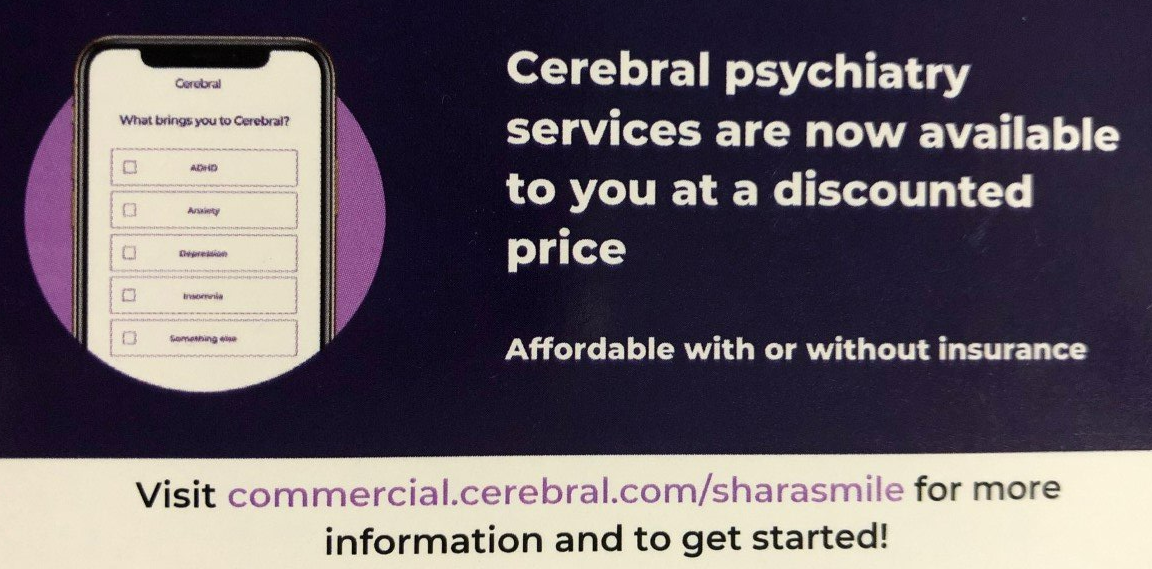 Shara Smile has partnered with Cerebral to help clients if they need a higher level of care and/or medication management!