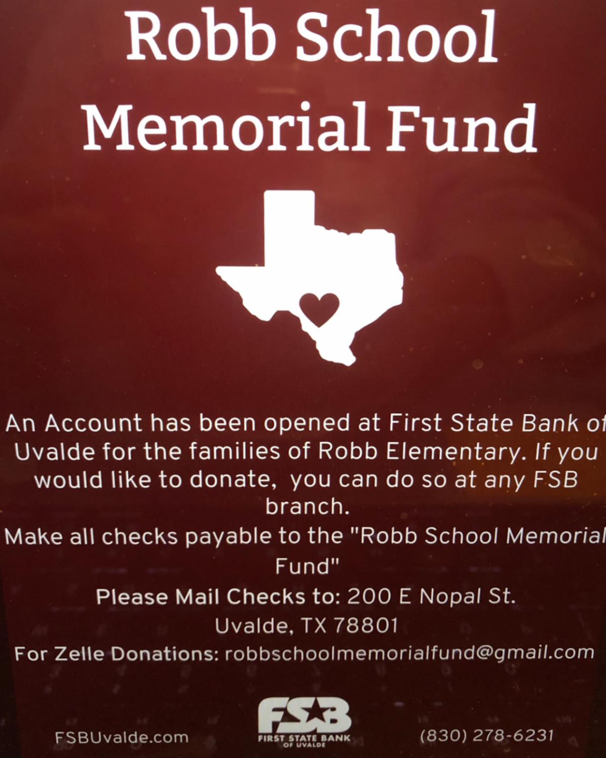 GIVE: Please see the above information about an account that has been opened for the families of Robb Elementary. This is the only official account to donate monies towards these hurting families.